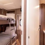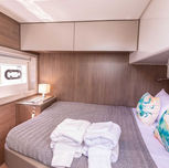 Solar Winds has 4 nicely appointed queen staterooms, plus one bunk room. The bunk room shares a bathroom with the forward port stateroom making for the perfect family suite for those with smaller children. Or, the bunk space can be used to store luggage and extra provisioning.