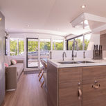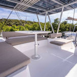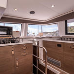 Like all Bali Catamarans, there is a large glass "garage" door for a bright and open salon and forward cockpit with ample seating.
