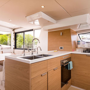 The Bali 4.6 catamaran distinguishes itself with its sleek profile. At the heart of the vessel, the innovative design merges the saloon and cockpit seamlessly. This area showcases Bali's signature features, including the unique pivoting door and expansive openings that epitomize the OpenSpace concept. These elements allow for exceptional airflow and natural illumination throughout.