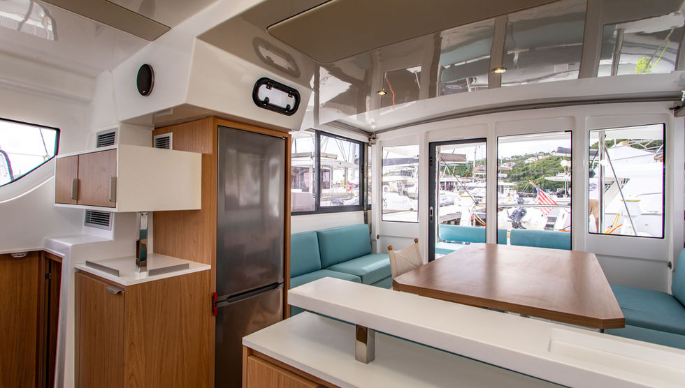 The Bali Catspace combines all the latest innovations in cruising: the integral deck, extremely efficient when sailing, allows you to move easily and comfortably around the various spaces, from the aft deck with bench seating to the forward cockpit with a lounging area and place to sunbathe.